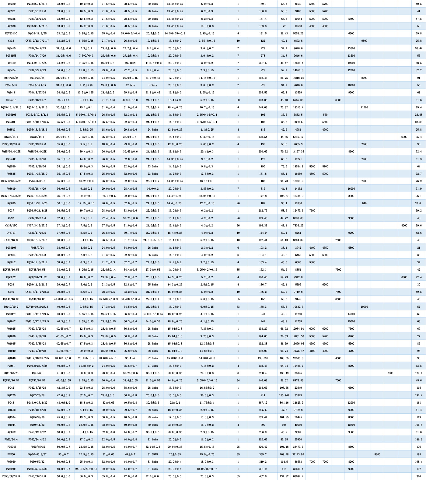 PQ-CV-LQ-LQS-RTQ-CQV-EQV系列
